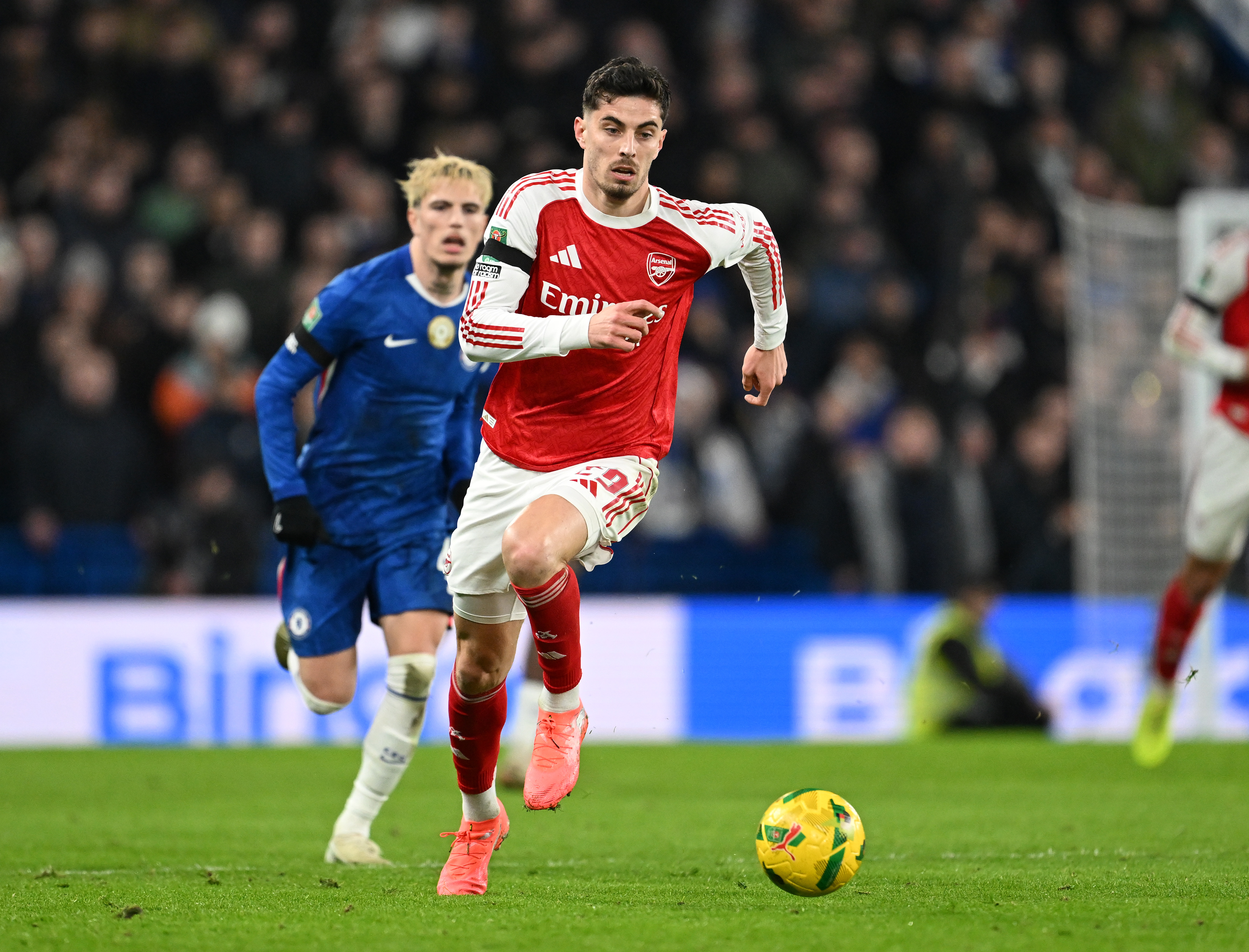 En strålende pasning i bakrom av kaptein for kvelden, Ben White, gikk over hele forsvarsfireren og sendte Havertz på løp.