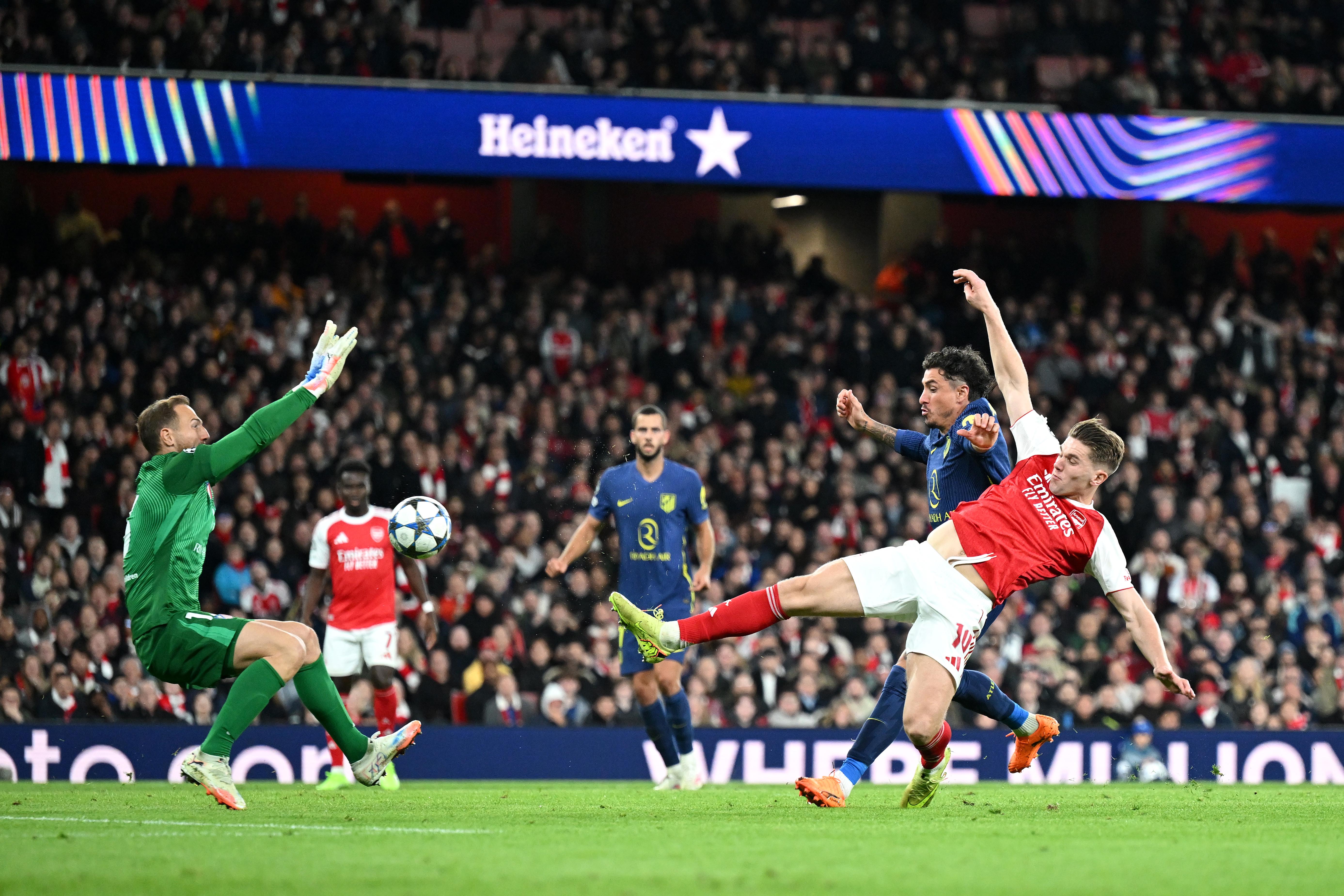For åtte minutter senere driblet Myles Lewis-Skelly seg gjennom hele sentrallinjen til Atletico, en Maradona-light, før han sentret videre til Gabriel Martinelli på venstreflanken. Et par meter innenfor 16-meterstreken siktet brasilianeren på lengste hjørne og brukte bare én berøring på å bøye ballen inn i nettmaskene.